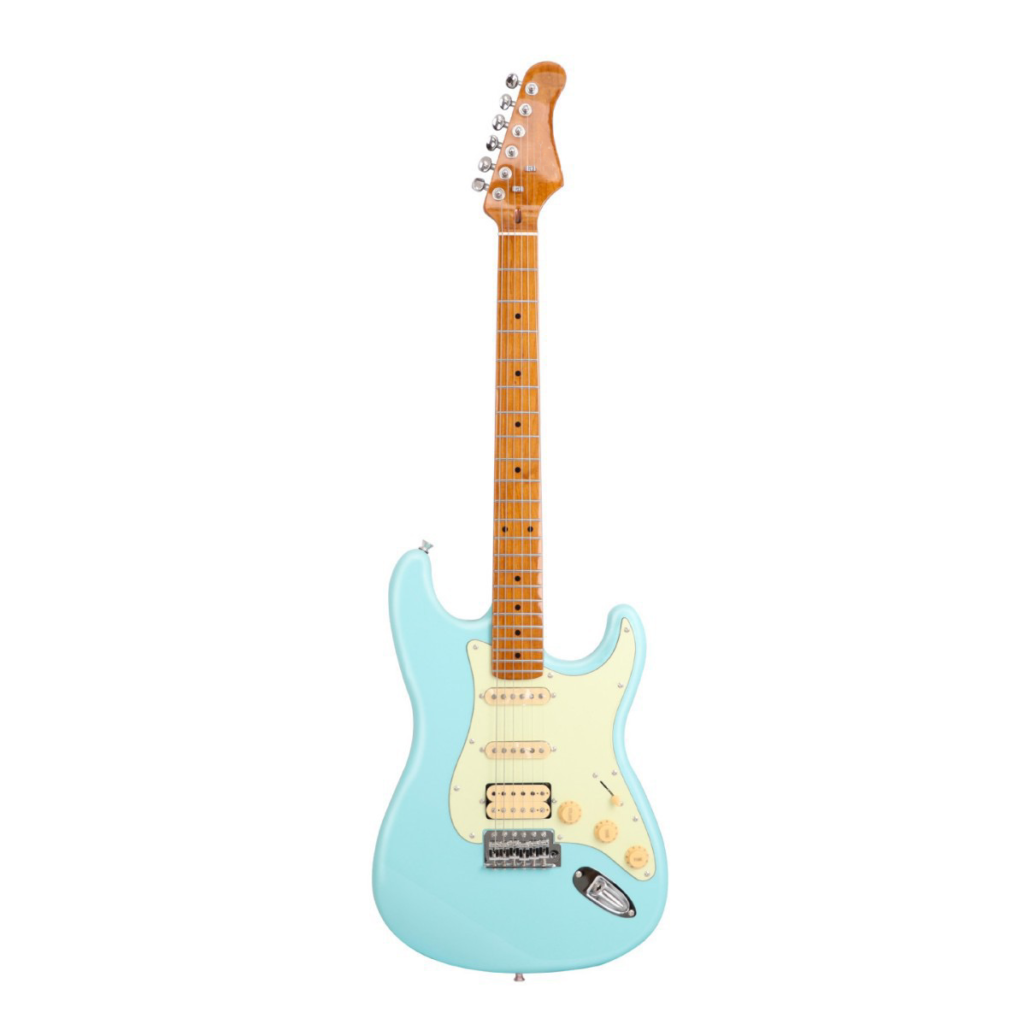 Gitara posiada lekki korpus olchowy oraz gryf i podstrunnicę z palonego klonu, co zapewnia doskonałą stabilność, płynność gry i ciepłe brzmienie.